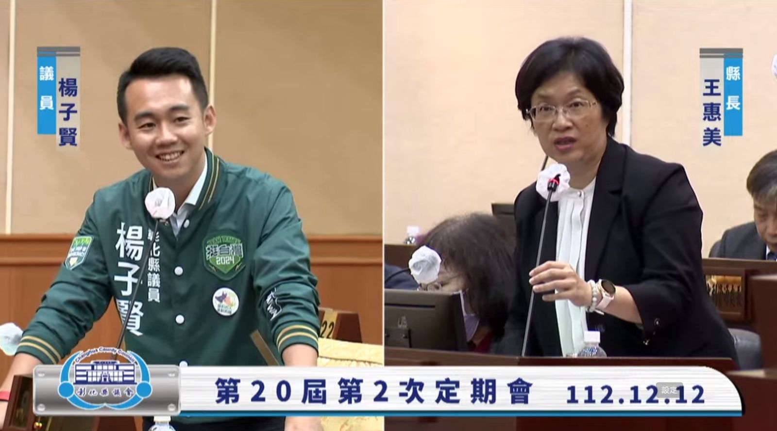 彰縣議員楊子賢質詢關於中共介選招待里長一事,縣長王惠美認為一邊一國不會這麼容易被改變投票方向。(翻攝自彰縣議會YouTube)