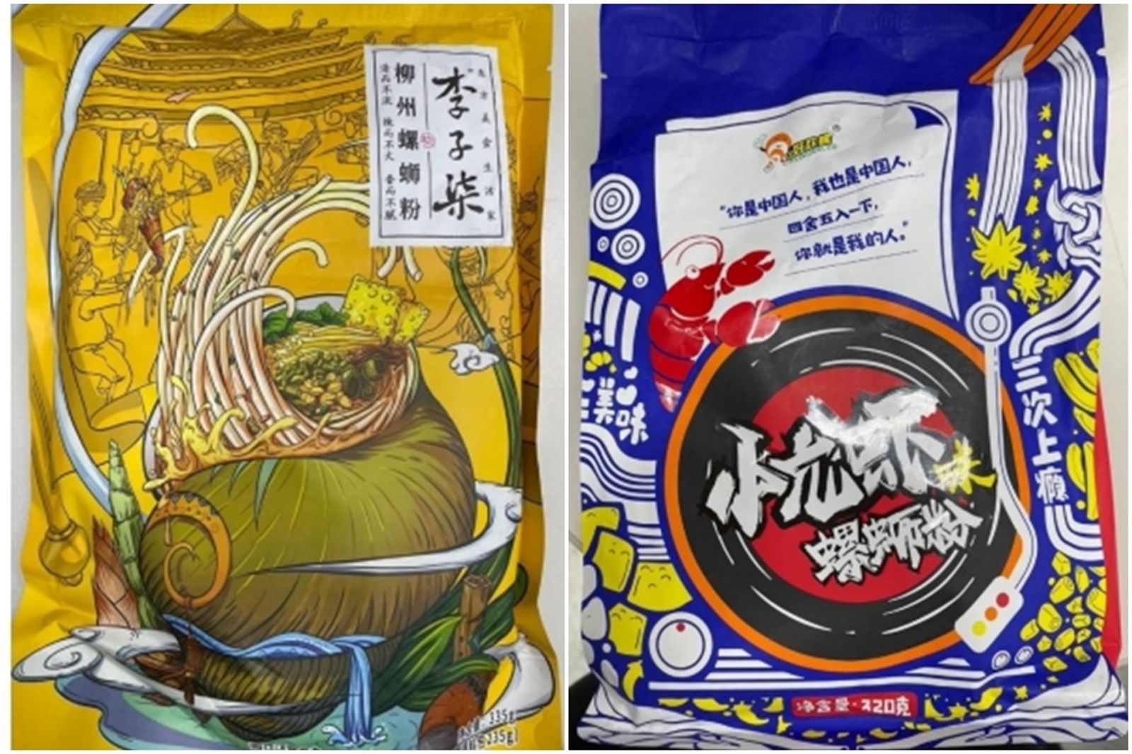 北市衛生局於電商平台價購10件螺螄粉產品,發現5件不符規定,其中4件「李子柒柳州螺螄粉」「好歡螺柳州螺螄粉(小龍蝦味)」「螺霸王柳州螺螄粉」「好歡螺柳州螺螄粉」於同一螺螄粉網站購入,其產地標示為「中國」,經北市警察局協助循線追查商品物流,發貨來源業者位於桃園市,現場查獲存放螺螄粉產品,因我國未准許中國大陸「螺螄粉」進口,本案涉及違反海關緝私條例相關規定。