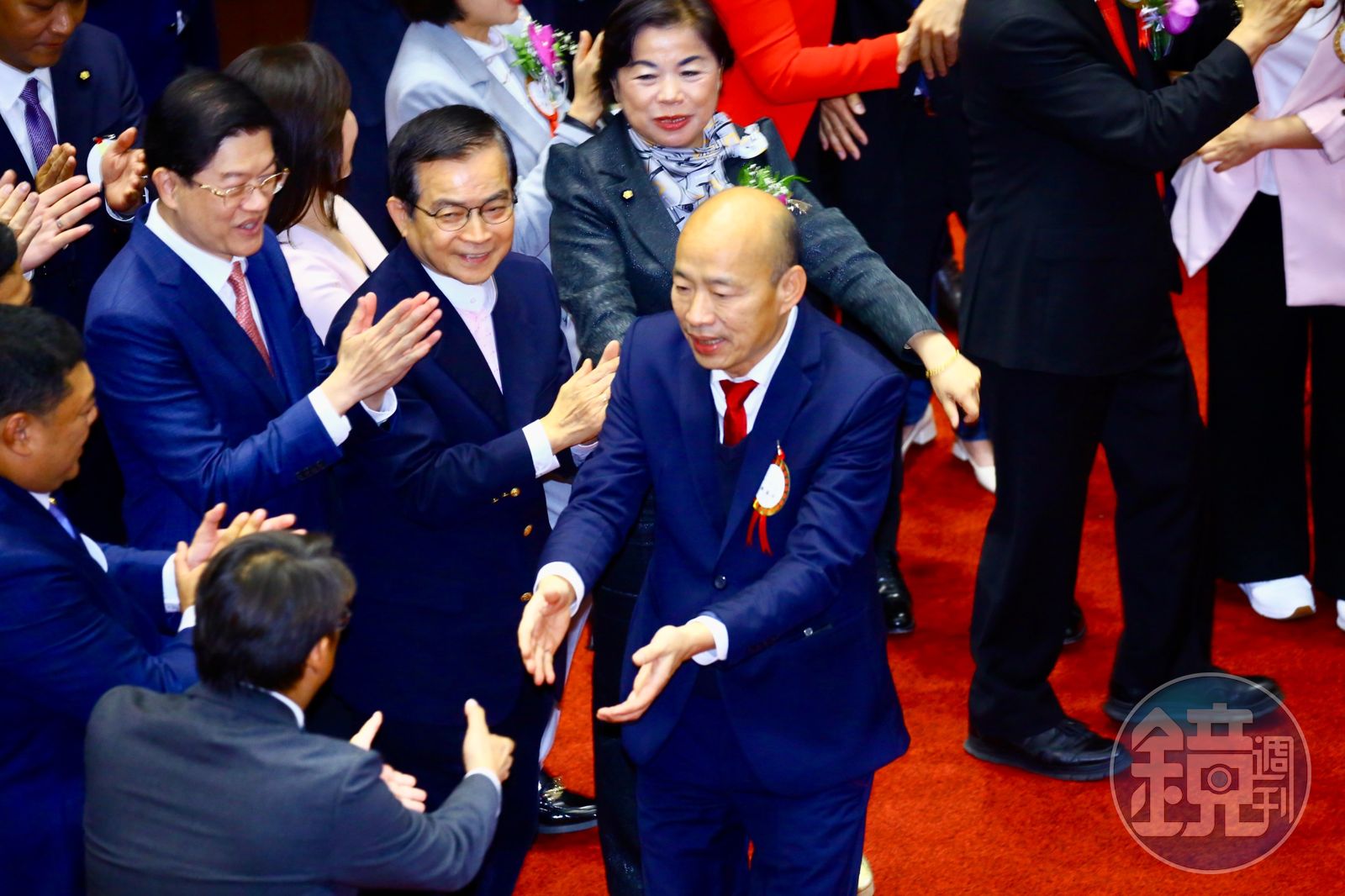 韓國瑜說,選戰激情已經落幕,民意期待國家繼續前進,政治口水與互批攻訐絕非人民所樂見,希望新國會新氣象,大家多存一份善意及包容,「國瑜也期許自己能扮演好國會議長的角色,恪遵憲法、確保議事中立,守護國會尊嚴,及權力分立與監督制衡的憲政體制,共同推進國家改革向前,不辜負全民的期待。」
