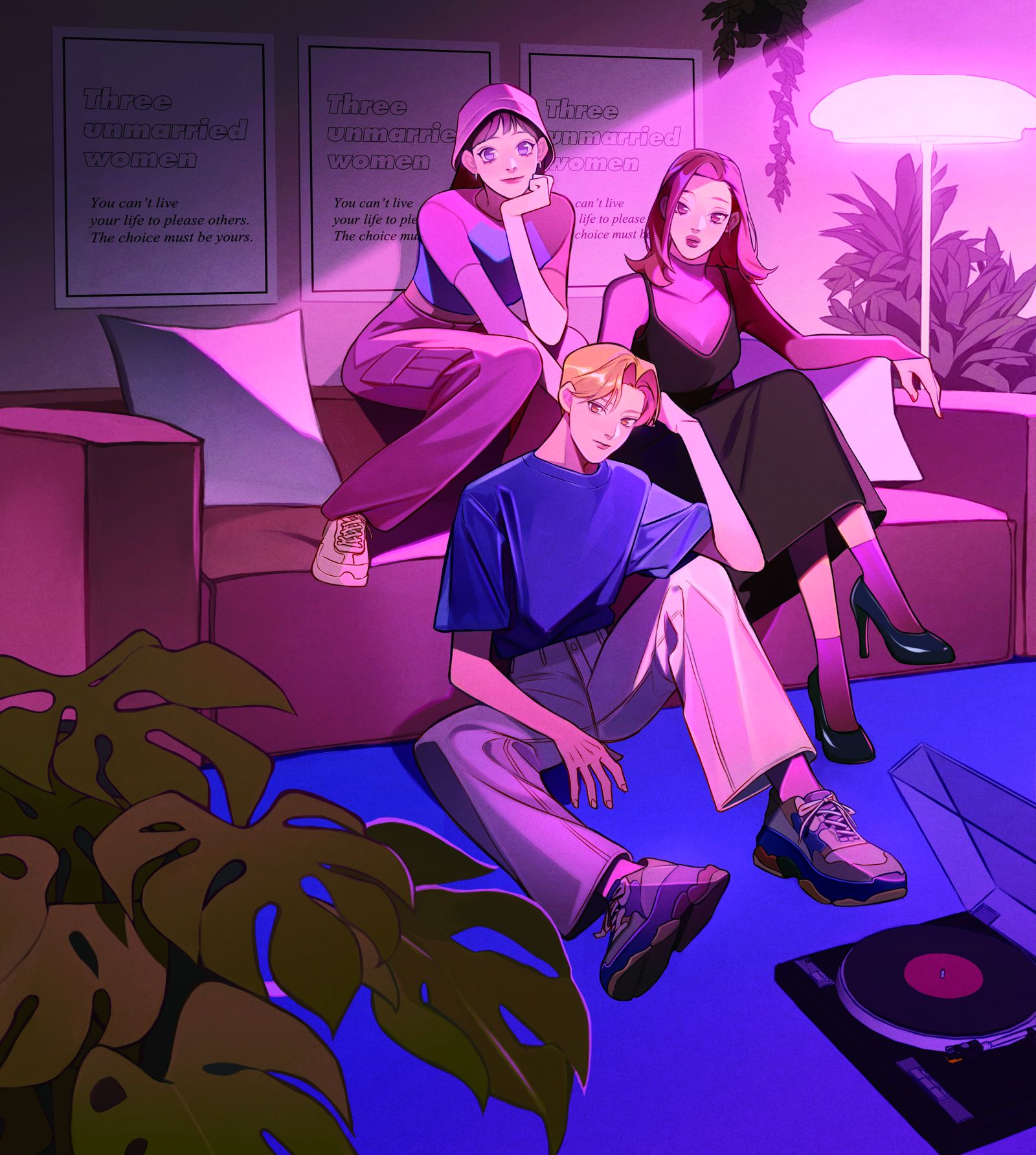 「過往不少作品為了解釋『為什麼不婚』,會呈現角色的成長歷程,例如受家庭等因素影響,但實際上很多選擇單身的人並沒有理由,只是單純喜歡這樣的生活方式。」因此日下棗藉由三姊妹與他人互動的日常來展現角色的價值觀,「除了感情話題,我也很用心描繪3位女主角的生活,讀者看了就會知道三姊妹的生活重心以及想追求的事物,自然而然會了解他們為什麼喜歡這樣的生活。」
