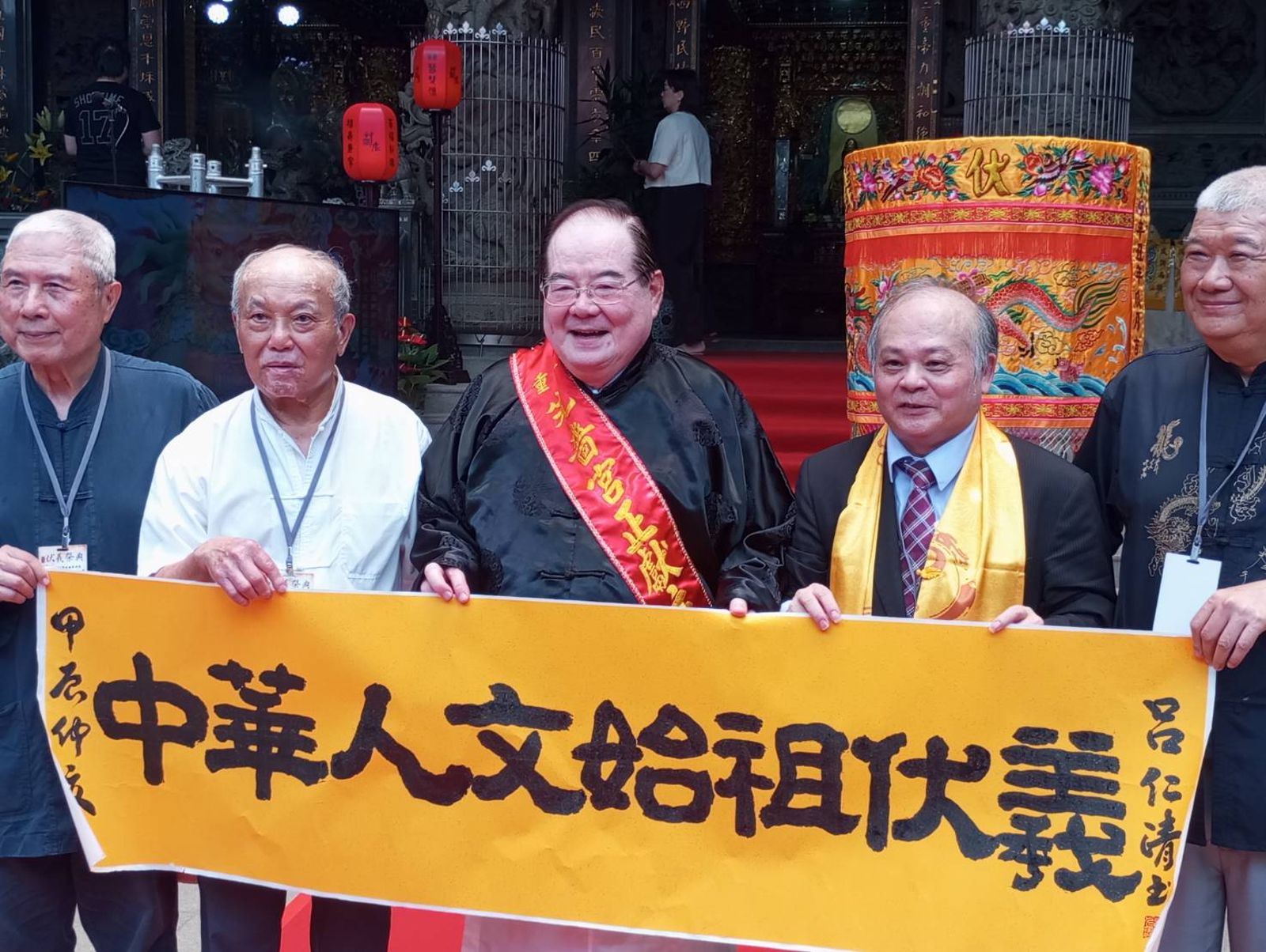 「2024兩岸共祭人文始祖伏羲典禮」21日在新北市三重先嗇宮盛大舉行,廟方表示,每逢端午佳節前後,台灣與甘肅天水兩地都會跨海連線,舉辦共祭伏義的活動,中華文化流傳5千年,造就了璀璨的歷史,源自於遠古時期就開啟的文明實力。