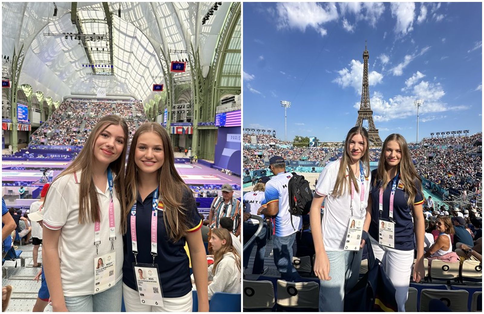 西班牙國王菲利佩六世(King Felipe VI)與王后蕾蒂希亞(Queen Letizia)26日到巴黎出席奧運開幕式,後兩人返回西班牙,兩個女兒萊昂諾公主、索菲亞公主隔日(27日)就「接棒」,她們穿著西班牙隊的球衣,出現在多個比賽場合。