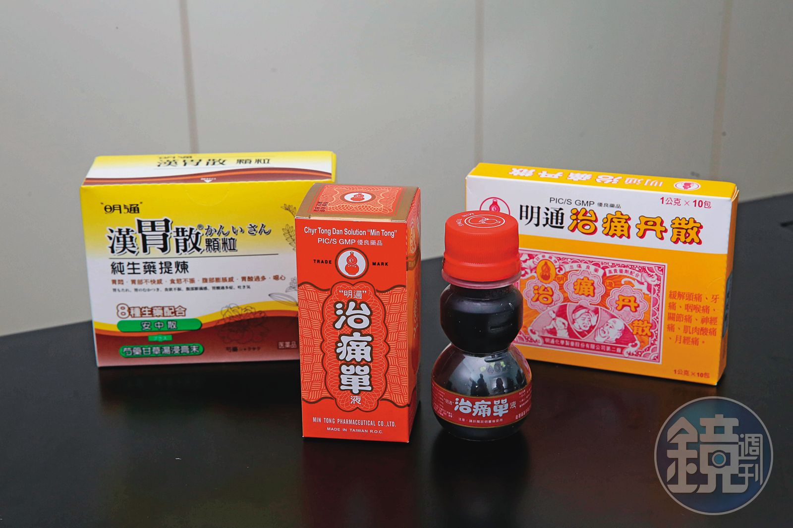 隨著第一代年事已高,公司陸續交棒二代家族成員,除了以鎮痛解熱的「明通治痛單」聞名市場外,還有可治脹氣胃痛的腸胃藥「保身丸」,驅除小兒蛔蟲的「愛兒菜」,以及結合台灣草藥香茅和樟腦油的外用藥「香腦油」等家用藥品在市面銷售。