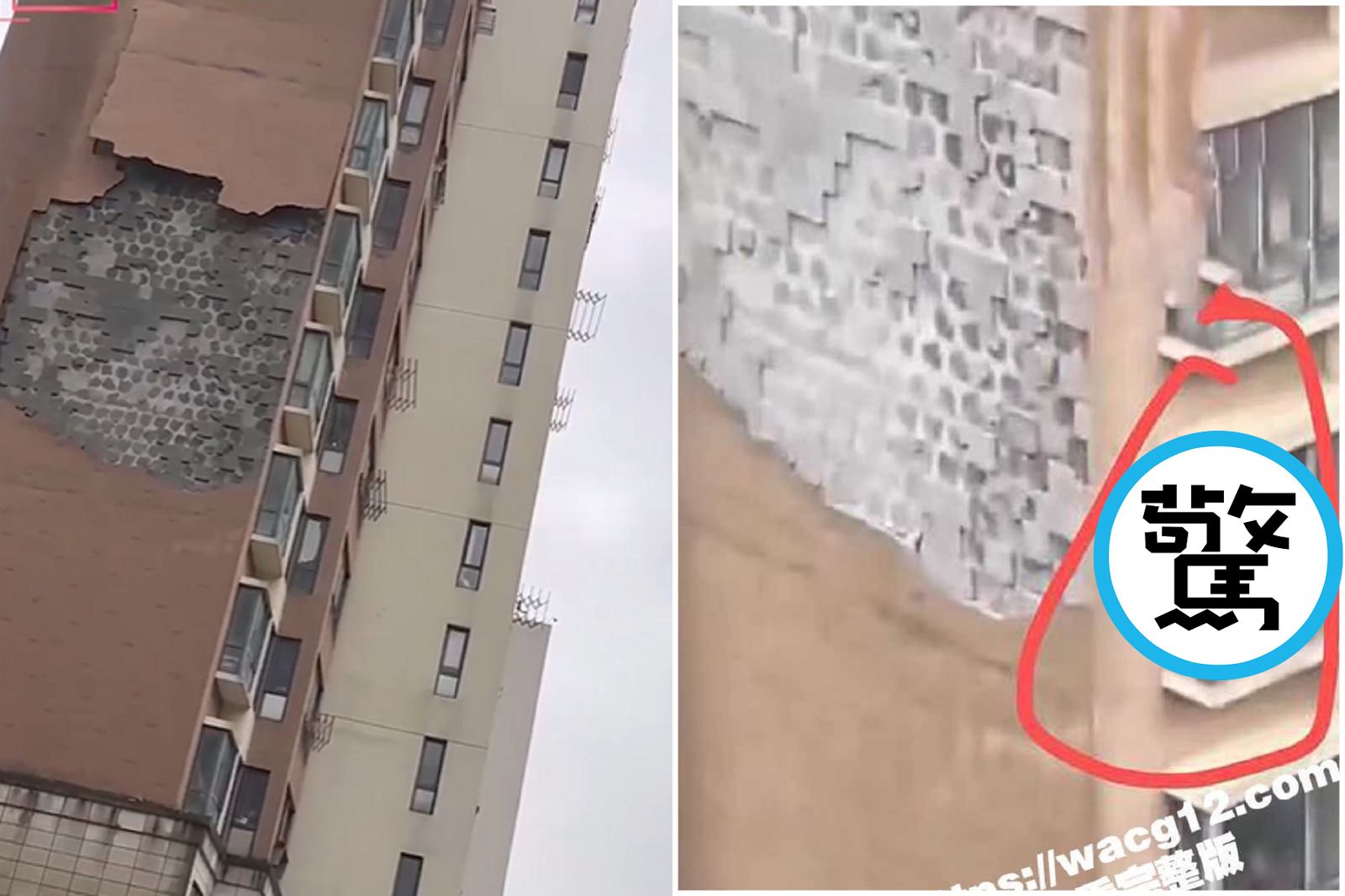 不過就在上海網友們紛紛拍攝慘重災情時,其中有一段畫面,被眼尖的網友發現「不對勁」。影片可見事發地點在一處住宅大廈,但大廈的外牆受到颱風吹襲,整片掉落,甚至快要砸到路人,畫面相當震撼。不過就在鏡頭中,有網友發現其中一戶人家,似乎正在進行「人與人的連結」。但也有網友認為,可能是有人「想太多」,或許剛好只是人影,卻被外界過度聯想成色色場面。