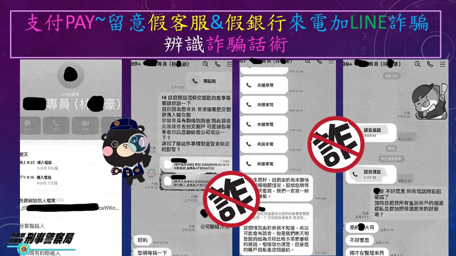 刑事局提供,詐騙集團專門冒用知名公司,透過電話、臉書Messenger或LINE聯繫民眾,要求依照指示操作網路銀行APP或前往ATM設定解除分期;若接到來電顯示開頭為「+2」「+886」等為詐騙電話,聽到「解除ATM設定」「匯款進行權限ID設定」「帳戶認證」「申請金流驗證」等關鍵字,請立即掛掉,這就是詐騙!民眾應多加留意ATM沒有解除設定的功能,也沒有辨識身分的功能,同時呼籲網購業者應加強防護措施,保障買賣雙方的交易安全。