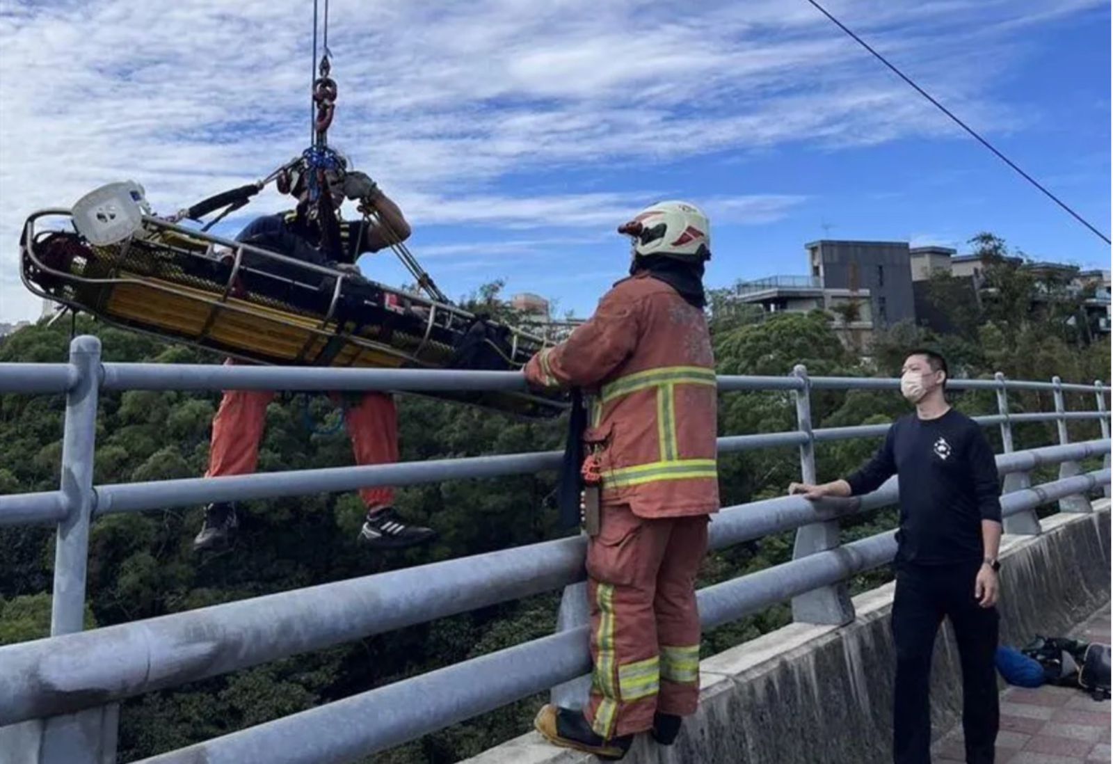 警方表示,今早接獲民眾報案,指稱目擊一名男子墜落林口東林橋,警消趕抵現場,發現該男躺臥橋底,狀況不明,警消垂吊至橋底,將該男拉上橋面,但經送往林口長庚醫院急救,該男仍死亡。 警方初步調查,該男年約60歲,因身上無相關證件資料,尚無法確認男子身分,而其墜橋原因也需後續釐清。 ★《鏡週刊》關心您,再給自己一次機會,安心專線:1925(24小時)/生命線:1995/張老師專線:1980