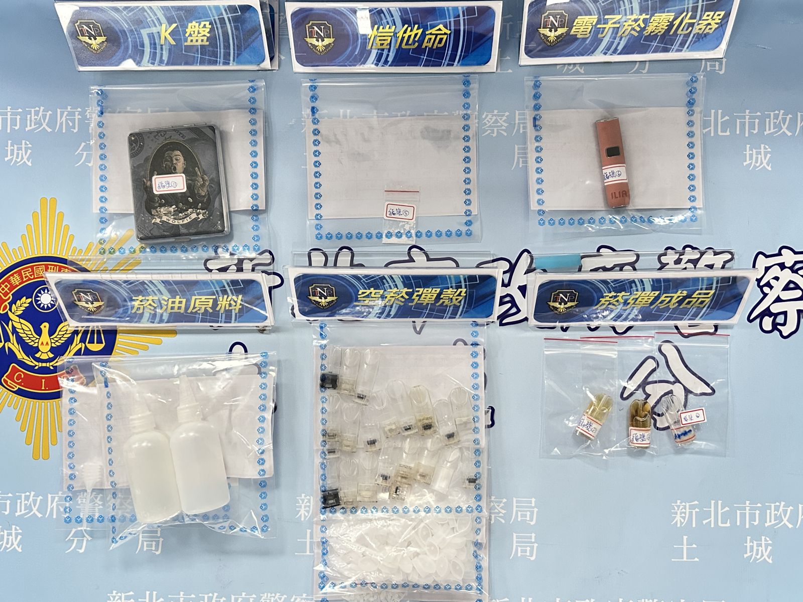 另日前土城分局所長於深夜執行巡邏勤務時,遭遇歹徒衝撞不幸殉職,該分局組成專案小組立即逮捕犯嫌陳女後,並報請新北地檢署向上溯源,經專案小組多日蒐證,發現陳女所施用之依托咪酯菸彈上游為劉男,遂於10月27日持拘票及搜索票,前往劉男住處將其逮捕,並發現劉男在自己房間內分裝毒品,現場共查扣摻有依托咪酯菸彈含主機1支、菸彈22顆、依托咪酯補充液1瓶、分裝工具1組、K盤1個、手機1支等贓證物,全案依《毒品危害防制條例》移請新北地檢署偵辦。