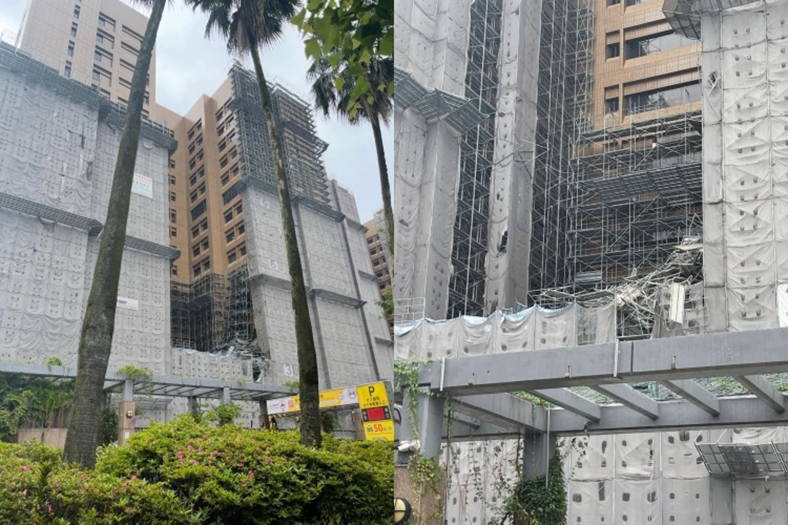 台大醫院表示,東址外牆早在2015年遭颱風蘇迪勒侵襲後即出現磁磚脫落隱憂,當年緊急架設大型防護網確保行人與車輛安全。為解決外牆老化問題,院方於2021年啟動全面整建工程,目前進行至拆除鷹架階段。