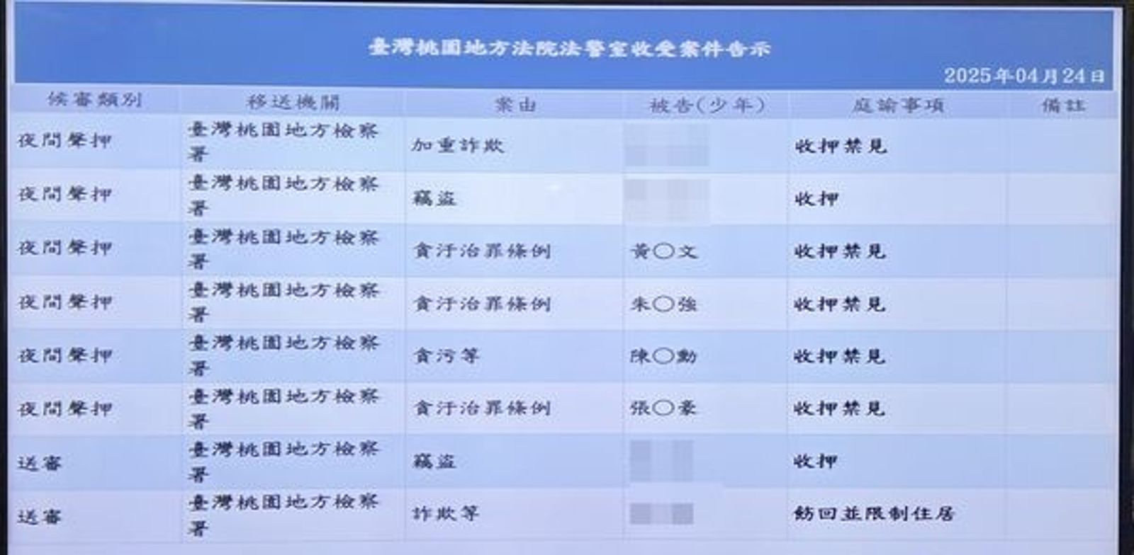 名單包括楊梅警分局新屋分駐所巡佐黃國文、永安派出所退休警員朱忠強、已調至桃園警分局的小隊長陳鎮勳,以及桃市府環保局稽查科的張姓前約僱助理,4人疑似長期收受回扣、包庇不法。
