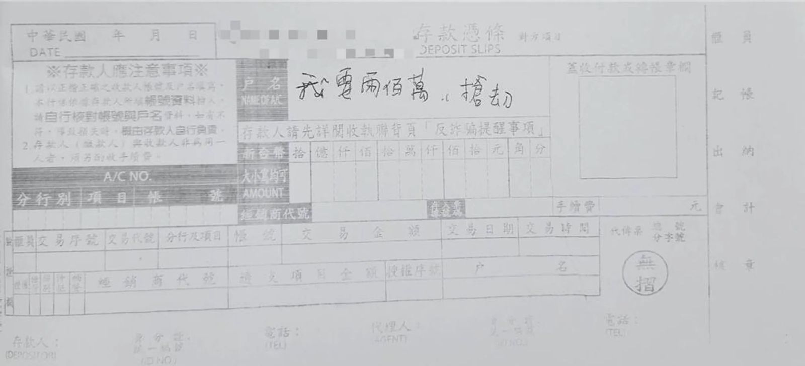 范男坦言,自己沒有預謀,只是當天走進銀行,臨時起意將「我要兩百萬,搶劫」寫在存款單上交給行員。警方表示,當時搜身時,他皮夾裡只剩1塊錢,連手機都沒有,彷彿與社會完全脫節,讓人印象深刻。