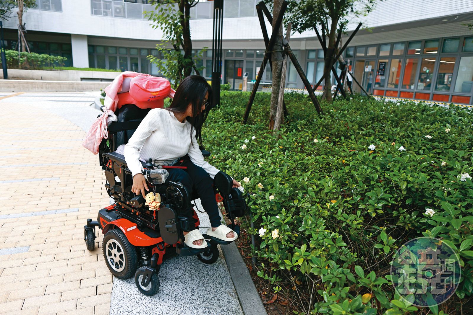壽司卷(化名)的房門沒關,應該說,不能關。因為她是SMA肌肉萎縮症患者,若是門關上了,她無法開門。她國小還能跪爬,上高中後惡化,現在只有頭、手能動,這個罕見疾病不可能康復,只能靠新藥減緩惡化。她的居服員辣辣(化名)說:「她不能控制自己的頭部,若是歪掉,需要有人幫她扶正。她大學住宿舍時,有一次我進去,發現她頭仰著,對著天花板。」我們問壽司卷,那一次她仰了多久?「一個多小時吧。」那段時間妳都想什麼?「好想死喔,真希望死一死算了。」壽司卷一臉嘻嘻笑。