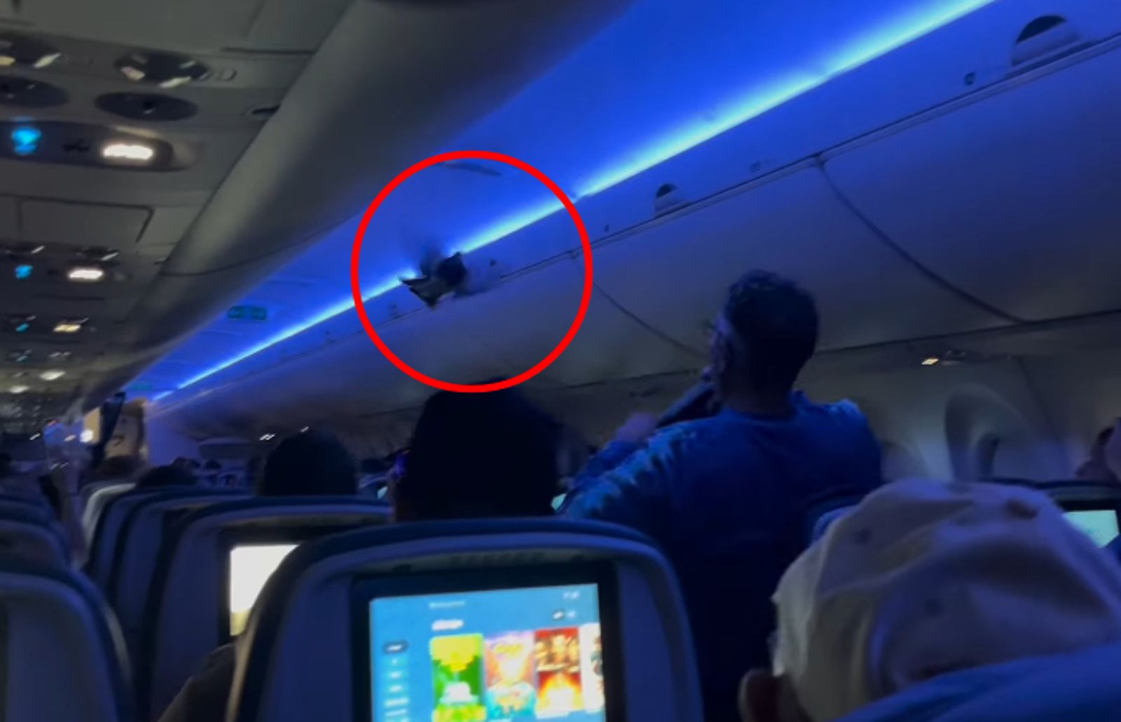 Tom Caw也用手機紀錄鴿子被補的過程,只見鴿子於機艙內橫衝直撞,1名乘客眼明手快,拿出外套當作網子,攔截了這隻鴿子,一旁女乘客嚇到放聲尖叫。