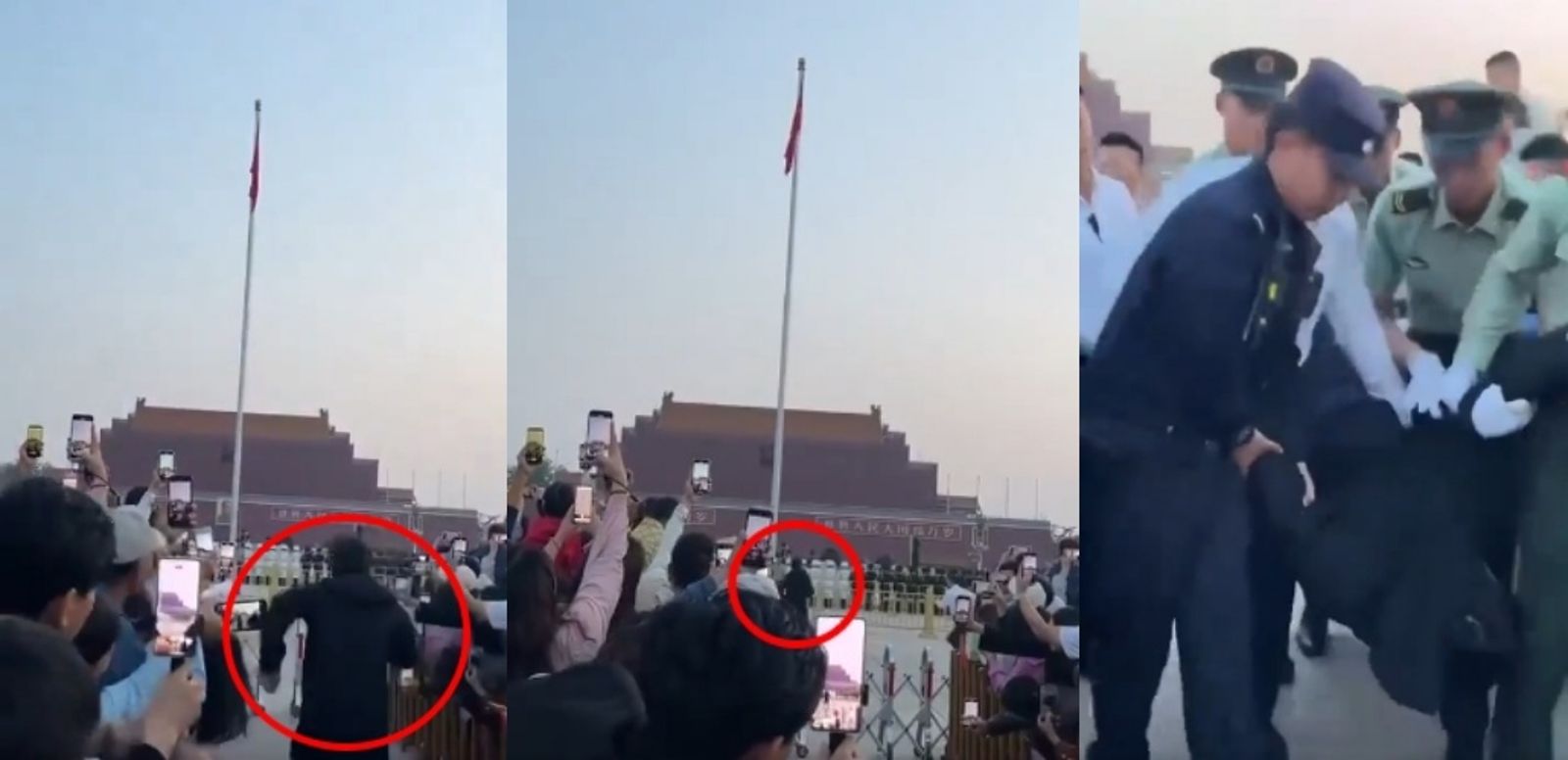 有片/六四36週年前夕「他翻越隔離圍欄」闖天安門升旗儀式 遭維安湧上撲倒抬走
