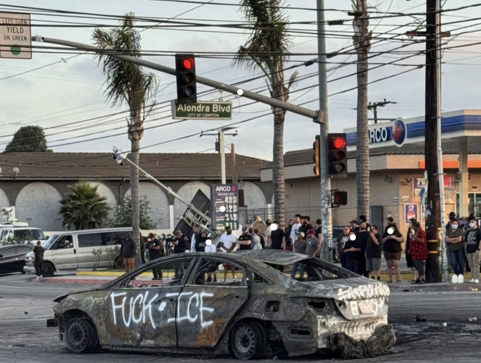 洛杉磯地區的衝突已延燒3天,洛杉磯警察局動用閃光彈、催淚瓦斯等武器以控制場面,而示威民眾除焚燒車輛外,還丟擲汽油彈,與執法單位發生激烈衝突。《CNN》採訪團隊更直擊警察毆打並推擠抗議者,同時向人群發射閃光彈、催淚瓦斯。