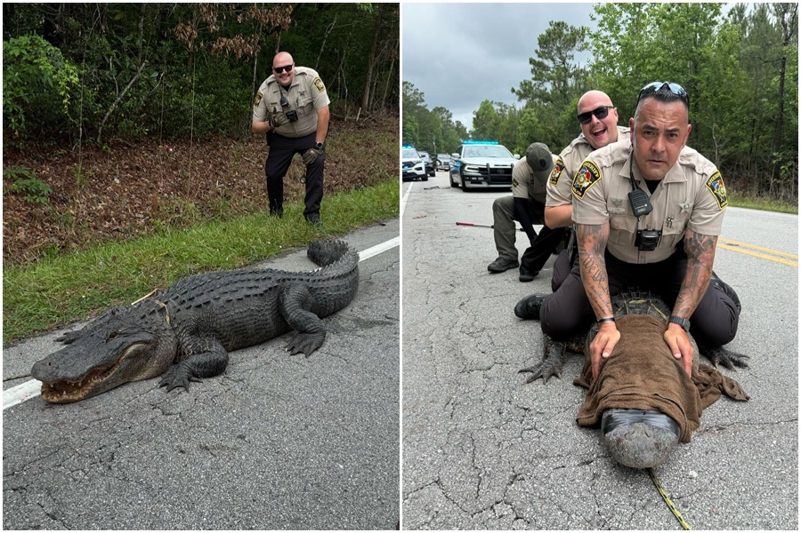 根據《紐約郵報》報導,昂斯洛郡警長辦公室指出,事發於5月25日,巨鱷Pepe當時無視「禁止躺臥道路」標誌,在繁忙車道上悠哉曬太陽,引發關注。警方與北卡野生資源委員會人員趕抵現場,合力用毛巾蓋住牠眼睛,再用電工膠帶封住牠的嘴巴,順利將牠帶離。