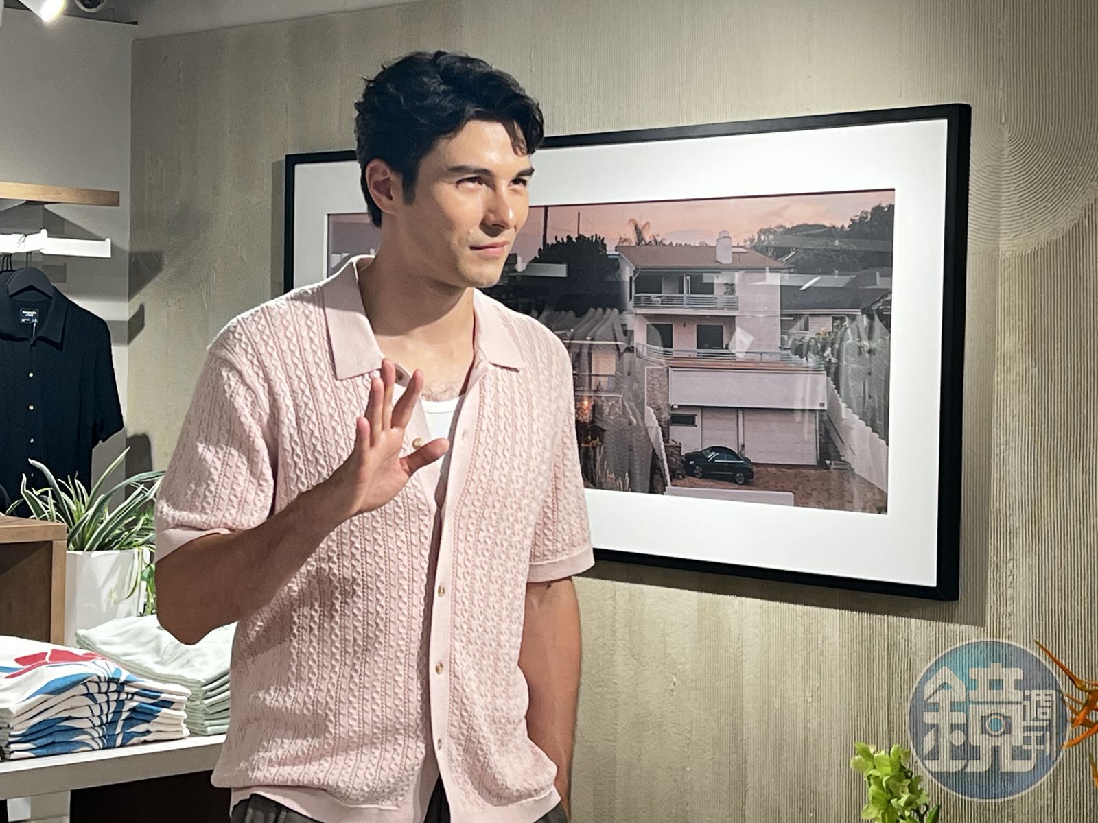 鳳小岳身穿粉紅色針織衫,他表示,「我平常就很愛穿針織衫,套上身後覺得心情很放鬆,這身搭配就是讓我可以出門到哪都輕鬆自在又有風格、有自信的感覺。」他逛店時特別看到牆上一副畫中的文字很有感,「We believe every day should feel as exceptional as the start of a long weekend.」,他說:「每一天都應該是精彩的、每一天的開始都應該是長週末的感覺,穿上他們的衣服就是一種自在的狀態。」 台北忠孝假日概念店共兩層樓,佔地逾百坪,店內整體風格取材自渡假酒店的靜謐與舒適,採用自然木質調、綠植妝點與柔和燈光,共同營造出鬆弛且具生活感的購物氛圍。限定獨家販售的品項包括三款女性長洋裝以及海洋風格休閒男裝。