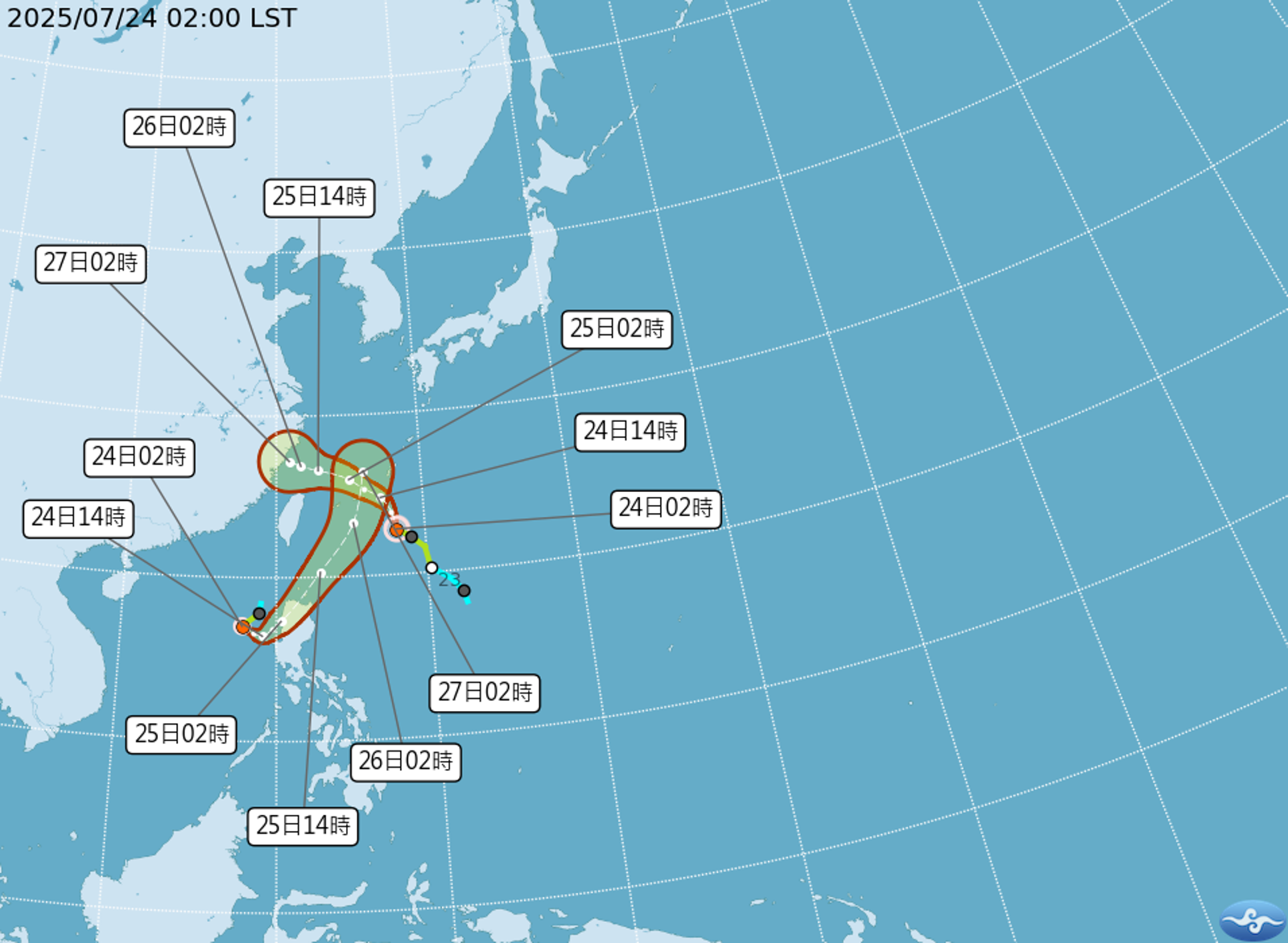 氣象粉專「台灣颱風論壇」分析,雖雙颱畫面壯觀,但兩者壽命都不長,台灣這次有望「全身而退」。但專家提醒,今起至週末,中部以北、山區及午後對流旺盛地區,須留意劇烈天氣如雷擊、瞬間強降雨等。各地氣溫方面,今日北部24至31度、中部25至33度、南部24至35度、東部22至34度,未下雨時體感悶熱,民眾外出仍應注意天氣變化。