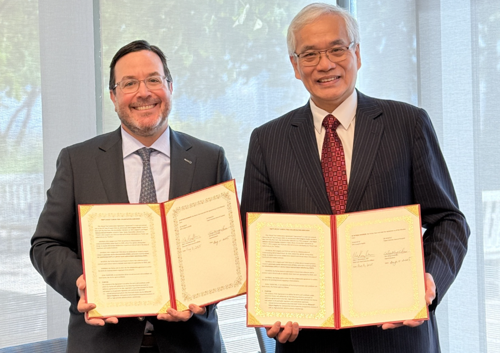 為深化國際醫療與研究合作,台北榮總院長陳威明率團拜會紐約大學朗格尼醫學中心(NYU Langone Health),由現任院長Robert I. Grossman與將於9月1日接任的Alec Kimmelman教授親自接待。雙方正式簽署以胰臟癌治療為優先的研究合作協議,內容涵蓋重粒子治療、病人轉介及研究成果共享。這是該院第一份與國外醫院的研究合約,意義重大。