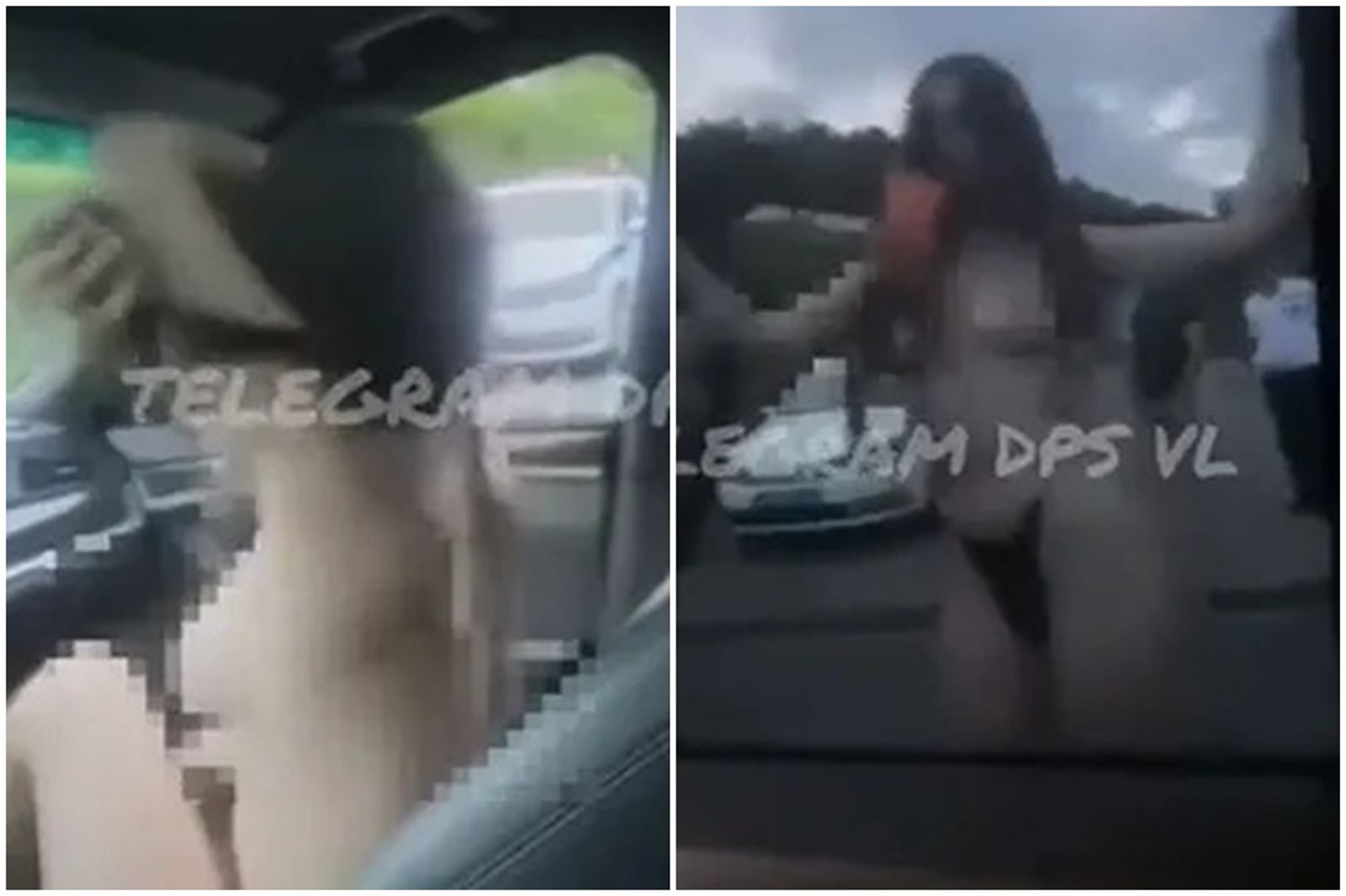 俄羅斯濱海邊疆區路邊有一票年輕人,開車經過在路邊執勤的交警時,發現交警間似乎起爭執,疑似喝多的正妹就在車上脫衣服,最後脫到全身只剩下丁字褲,就下車挑舞。