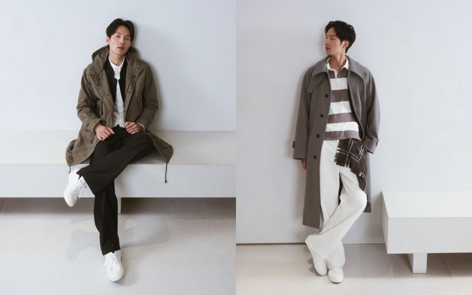 系列中幾件單品尤為突出:以羊毛氈製作的雙排扣大衣,正統結構中融入寬鬆比例;段染羊毛針織衫與毛帽套組,使用義大利紗線與不規則段染工藝,營造如初戀般的悸動;靈感來自英倫搖滾的Oasis jacket,致敬設計師年少時最愛的音樂記憶;全手工製作的西裝,嚴謹結構象徵品牌未來的核心常態款式;而日本丹寧則回歸傳統工藝,保留最純粹的美式精神。
