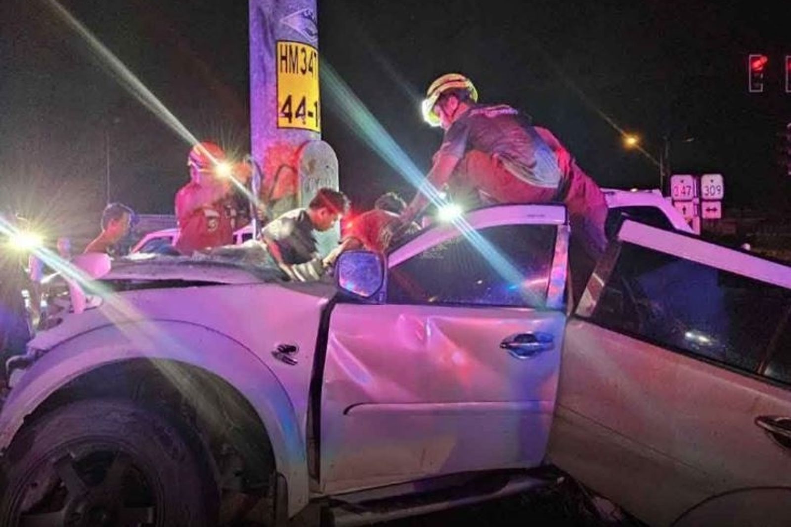 6日凌晨12點50分,泰國醫院的救護人員接獲通報,前往一處車禍現場。現場1輛白色轎車撞上分隔島的電線杆,車輛嚴重變形,駕駛被困車內。救援人員立即使用油壓剪切器進行救援,花費逾30分鐘將男子救出。
