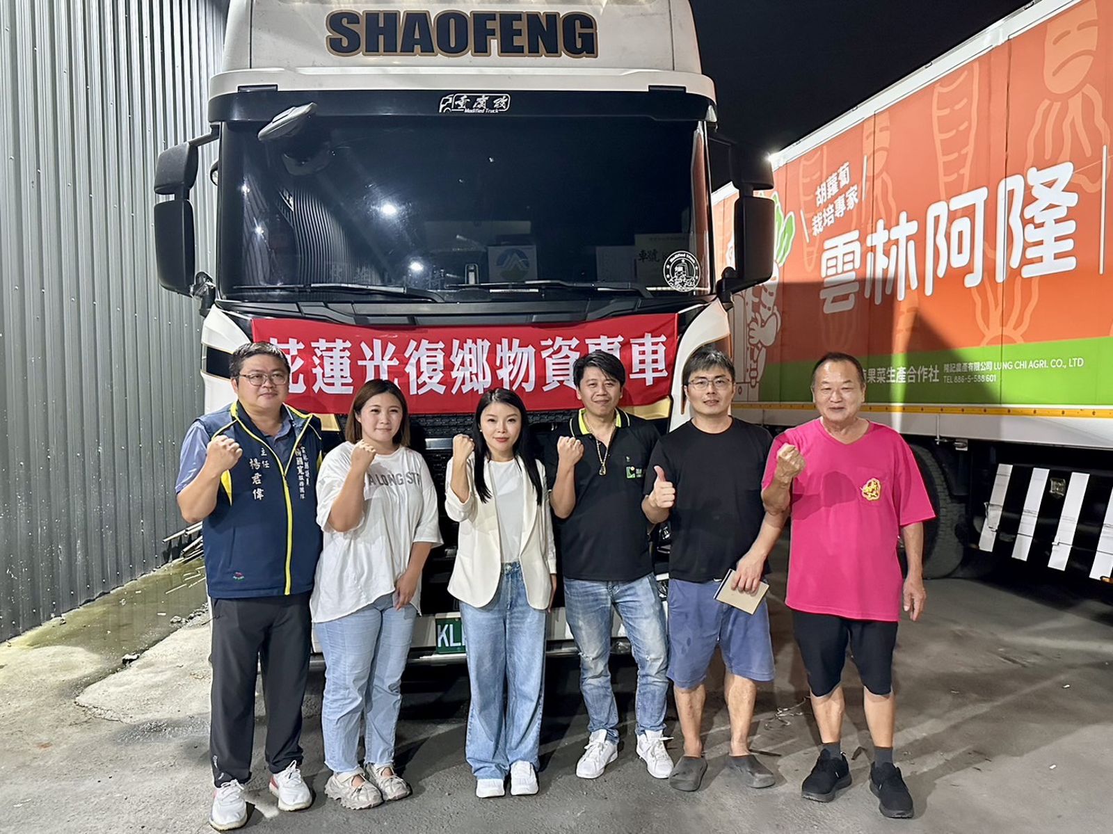 此次由西螺新天宮主委黃耀慶號召,雲林縣府顧問、西螺下㓓果菜合作社理事主席林彥輝及劦豐蔬果托運董事長黃盟宗等協助募集工作,包括飲用水、毛巾、免洗內褲、衣物、棉被等民生用品,以及圓鍬、掃把、漂白水、消毒液等清潔工具,另有雲林在地蔬菜、水果等免煮食物,一天內募集物資達6輛大貨車,並於今凌晨出發花蓮,預計車程超過10小時。