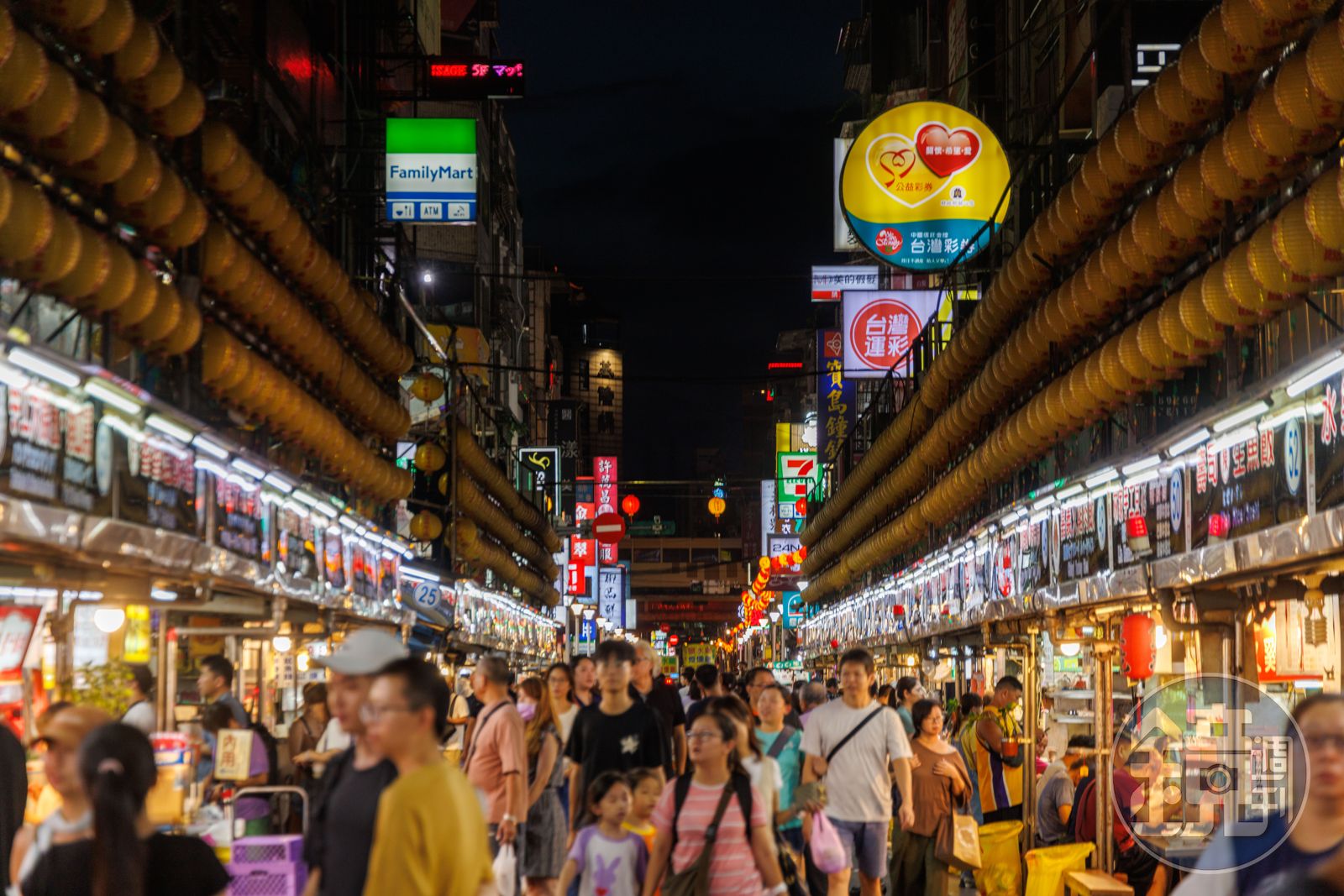 基隆的廟口主要在仁三路上,兩旁金黃燈籠高高掛,十分熱鬧。