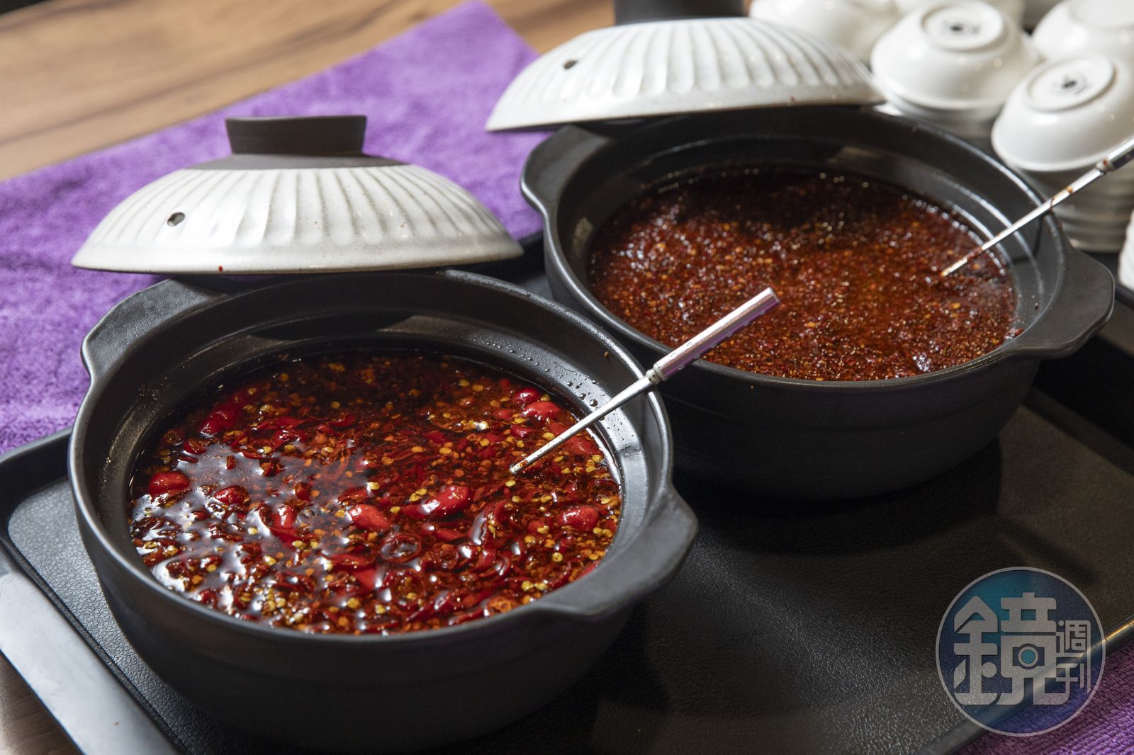 目前店裡提供2款獨門辣醬,一款是把乾辣椒磨碎做成辣油,另一款是散發新鮮辣椒香氣的生辣椒醬,2者都辣出名聲,各自有了「辣到掉牙」和「香椒妹妹」商品名稱,甚至還紅到網購平台。