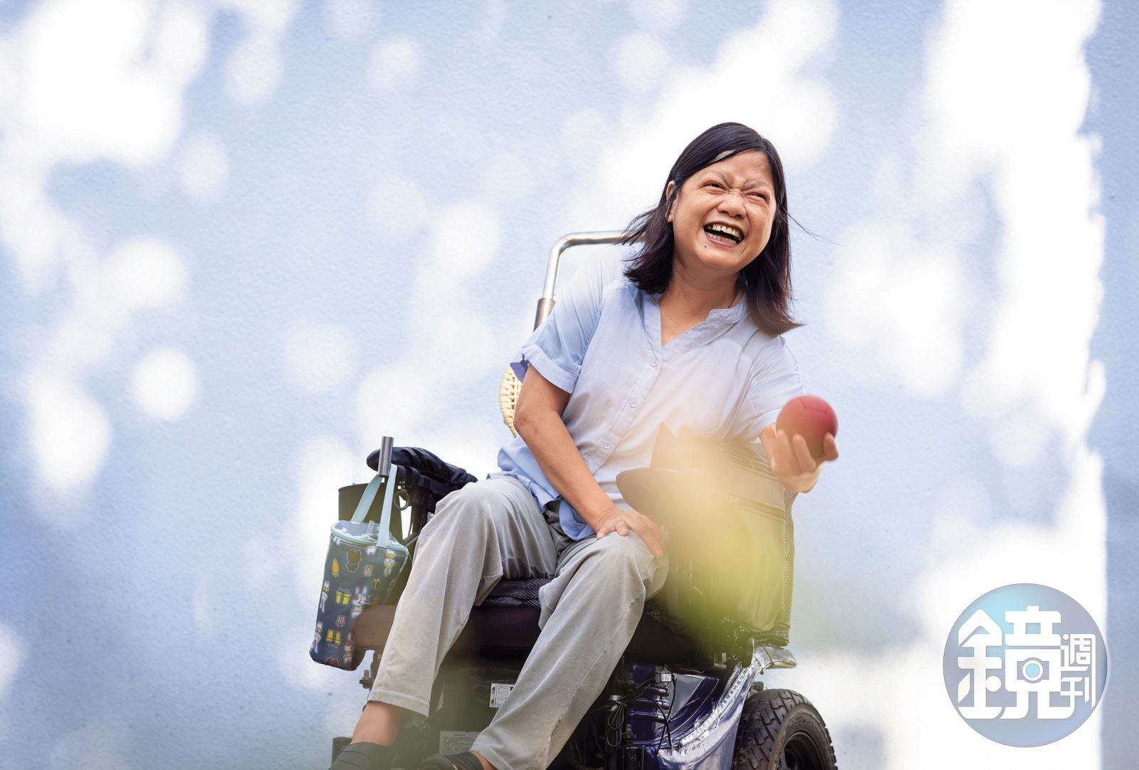 我們在汐止租房子,那裡房租便宜、馬路也比較寬,房子後面還有自行車道。我們會飆電輪(電動輪椅),其實最快時速只有10公里吧,呵呵,通常都是他贏。