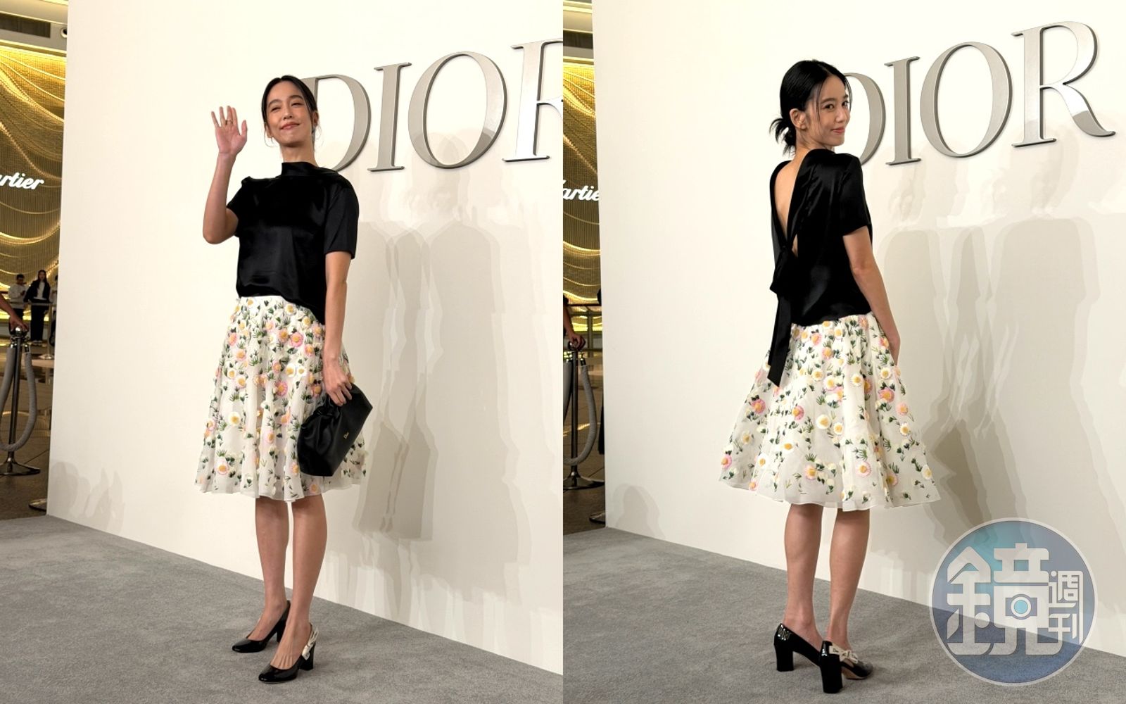 陳庭妮表示,「Jonathan Anderson給了大家很不同的驚艷,我第一次看到手上包款時,以為是手拿包,但是它有鍊帶、上面還有蝴蝶結,是會讓細節控很開心的設計」,她分享身上的2026春夏女裝,「Jonathan把DIOR元素運用的很徹底:解構、花卉這些,這一季的服裝更像藝術品,實穿又有微性感」。穿上這些精緻服裝會緊張嗎?她笑說:「我出道得早,已經身經百戰了,穿上華服反而能更從容呈現它的姿態,不會緊張。」