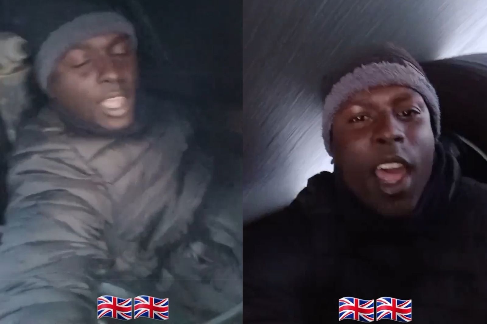 同一天由同一個帳號發布的另一段影片則拍到,1名男子將自己塞進聯結車車頭與貨櫃之間的縫隙,藉此攀附在一輛停在路邊的貨車上。鏡頭隨後一轉,畫面變成1名男子在飯店房間的鏡子前自拍,看似正在慶祝,這間房間設備新穎,還附有高級淋浴間,據傳是由納稅人買單的安置旅館。這2段影片都加上了英國國旗的表情符號,並發文寫道「終於,我的兄弟做到了,英國歡迎你」,另一則標題則寫著「來自英國內部的接應兄弟」。